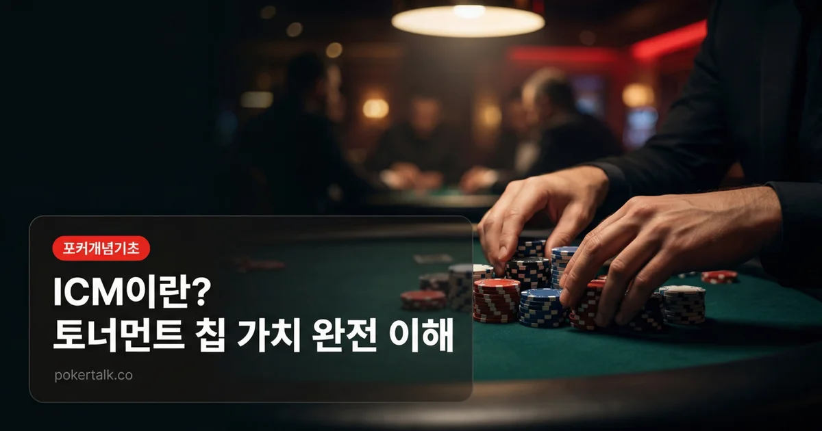 ICM(Independent Chip Model)은 이 비대칭을 수학으로 계산하는 모델이다. 지금 내 칩이 실제 돈으로 얼마인지, 어떤 결정이 장기적으로 더 많은 돈을 가져다주는지를 알려준다. 토너먼트 포커를 진지하게 하고 싶다면, ICM은 반드시 이해해야 할 개념이다.