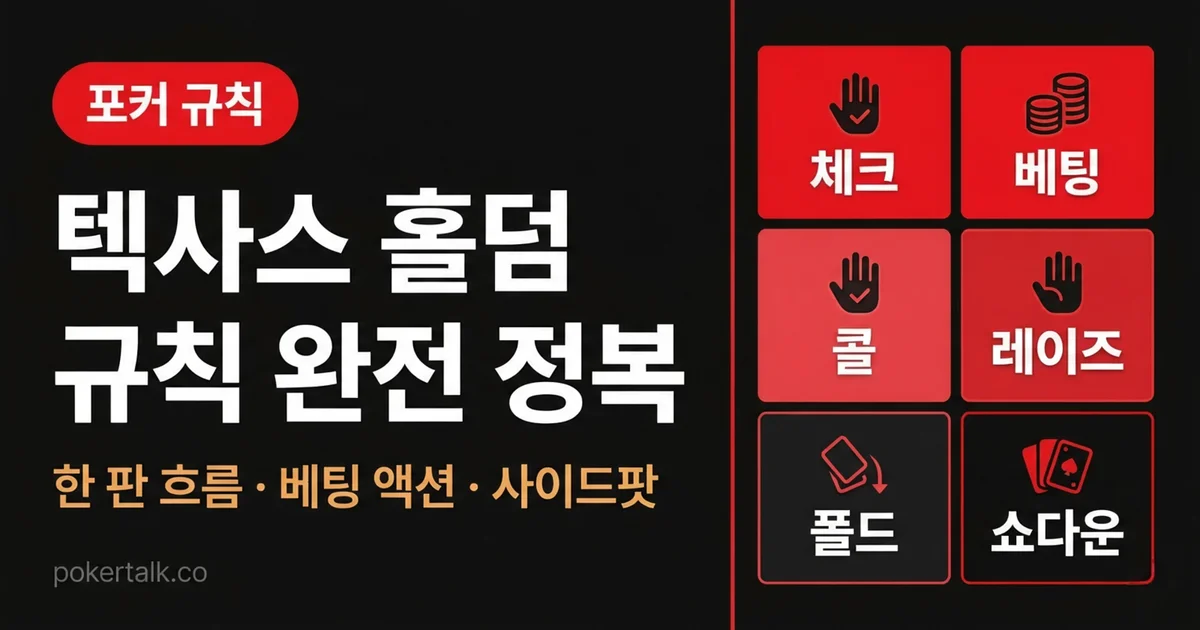 텍사스 홀덤의 규칙 자체는 외울 수 있다. 그런데 실전에서는 규칙을 안다고 생각했는데 막히는 순간이 꼭 온다. 체크할 수 없는 상황에서 체크를 시도하거나, 올인한 플레이어가 사이드팟을 왜 못 가져오는지 몰라서 혼란스럽거나, 공용 카드가 더 강한 족보를 만들고 있다는 걸 뒤늦게 깨닫거나.