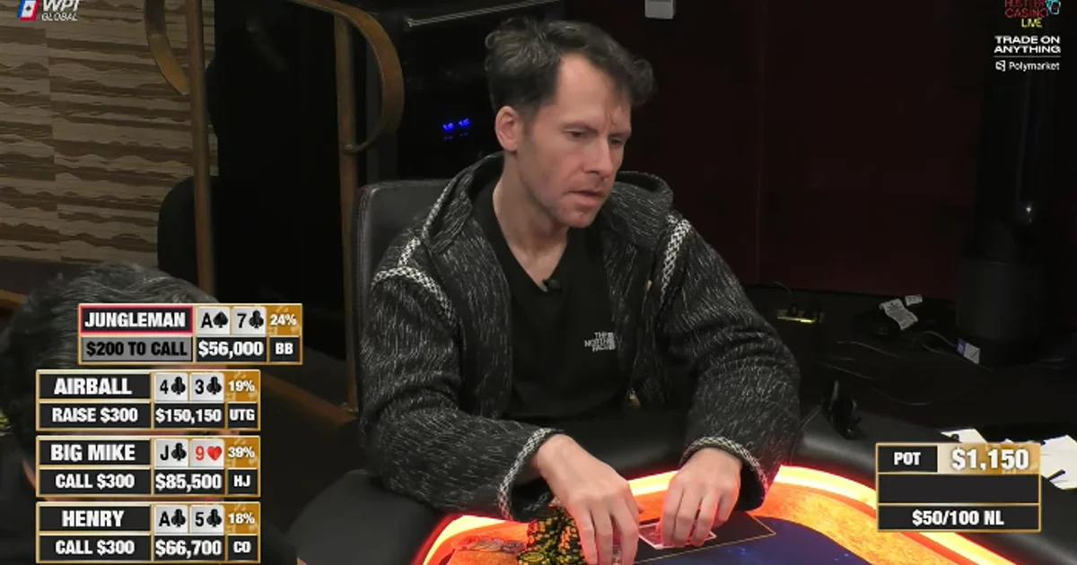 2회 PPC 챔피언이 K하이 한 페어에 무너졌다 — 정글맨, HCL에서 카드 집어던지고 즉각 추방