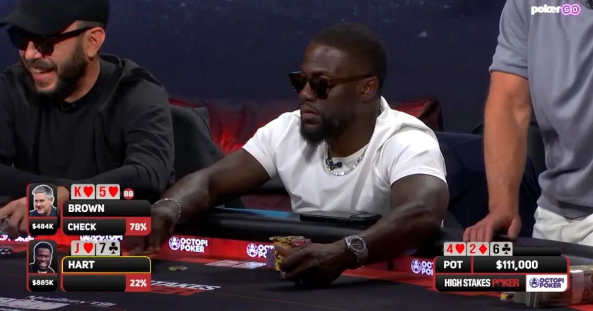 코미디언 케빈 하트(Kevin Hart)가 하루 만에 천당에서 지옥으로 떨어지는 경험을 했다. 지난 4월 5일(현지시간) PokerGO에서 생중계된 High Stakes Poker에서 하트는 전반부 동안 스택을 100만 달러 이상으로 불렸지만, 종료 직전 단 두 핸드에서 Eric Wasserson을 상대로 180만 달러를 고스란히 헌납했다. 셀럽 포커 참가자의 전형적인 롤러코스터 세션이 실시간으로 펼쳐진 밤이었다.