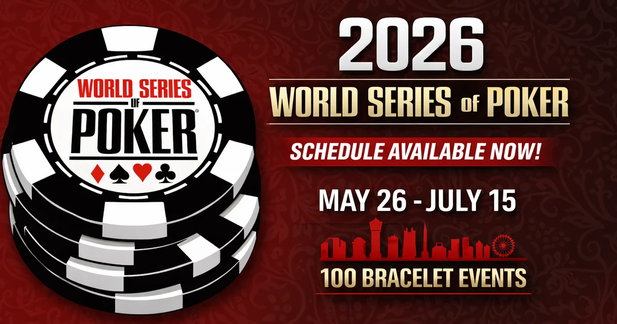 2026 WSOP는 5월 26일부터 7월 15일까지 미국 라스베이거스 호스슈(Horseshoe)·파리스(Paris) 호텔에서 개최된다. 총 100개 브레이슬릿 이벤트, 바이인 $300~$250,000, 메인 이벤트 시작일 7월 2일.